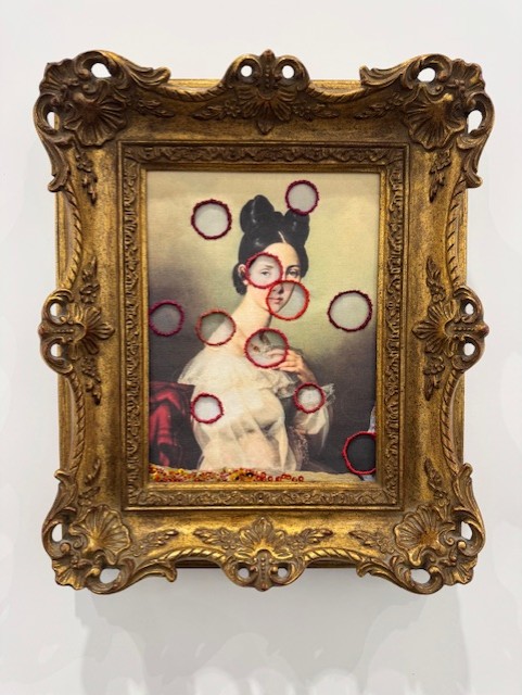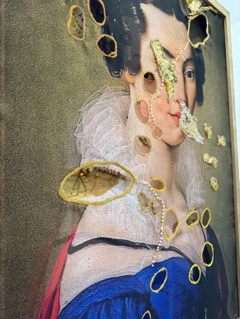 Mileen kent Manuela Caniato van de lessen textiele kunst aan de academie in Leuven. Het is de eerste keer dat ze naar buiten komt met haar werk. De tentoonstelling ‘Threadbare Beauty’ vertrekt van portretten van klassieke schoonheden. Naar eigen zeggen, wil ze hen bevrijden uit de benarde situatie waarbij ze gevangen lijken te zitten in een eeuwig schoonheidsbeeld. “Ik gebruik borduurwerk om in te breken in die spookachtige portretten en er mijn stempel op te drukken. Ik borduur in mijn eigen taal, waardoor ze ouder worden. Want zelfs in verval is er een zekere schoonheid – dat hoort bij het menszijn. Steek voor steek maak ik ze weer sterfelijk.”
