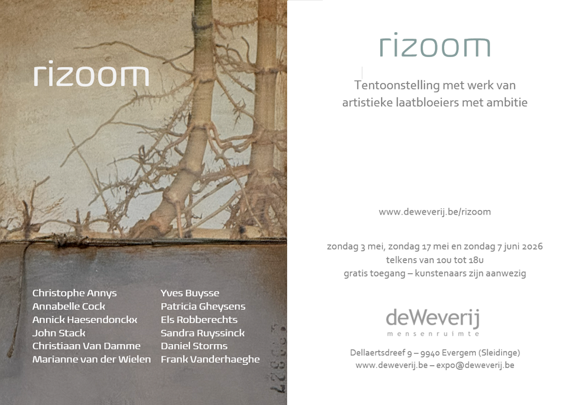 Rizoom is een project van deWeverij voor kunstenaars tussen 50 en 67 jaar die nog beroepshalve actief zijn of een overstap naar de kunst overwegen, en tegelijkertijd uitermate gedreven zijn om als kunstenaar alsnog het verschil te maken. Het omvat een groepsexpositie met gelijkgestemden, maar ook een lerend netwerk traject waarbij er gewerkt wordt aan het kunstenaarschap door uitwisseling met andere kunstenaars en inbreng van externe expertise.