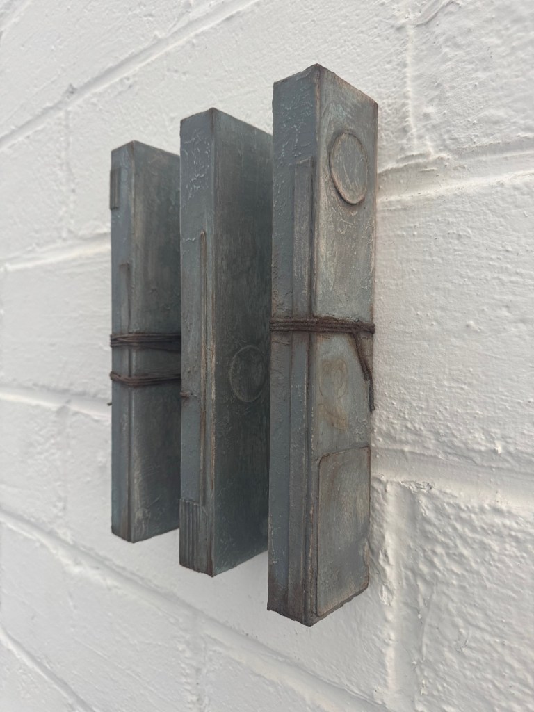 Hoewel er op het eerste zicht geen specifieke ordening is, vond er toch een voorkeursselectie plaats, waardoor de werken die Marc Mestdagh het meest konden beroeren op één lijn geplaatst werden. Verder werd in de ruimte gezorgd voor een passend ‘klimaat’ door het 4-delig werk Airco 5 uit 2024. Tot slot herinnert een klein nieuw werk met als titel ‘Time flies when you’re having fun’ (zie foto) eraan om bewust te registreren, letterlijk te turven, als je voornemens tot een goed einde hebt gebracht. Op die manier wordt het proces van het verleden gekoppeld aan het resultaat van de toekomst. Iets waar kunst heel goed in blijkt te zijn!