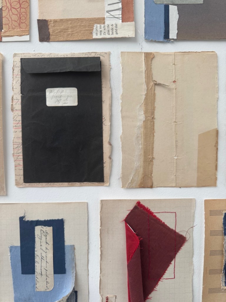 Een ander belangrijk thema in haar werk is ‘tijd’. Hoe tijd inwerkt op materialen zoals papier. Hoe tijd soms door onze vingers glipt. Het project ‘een jaar in collages/366 collages in 2024’ is daar een voorbeeld van. Ze wil niet nostalgisch vasthouden aan het verleden, maar het deconstrueren en herinterpreteren.